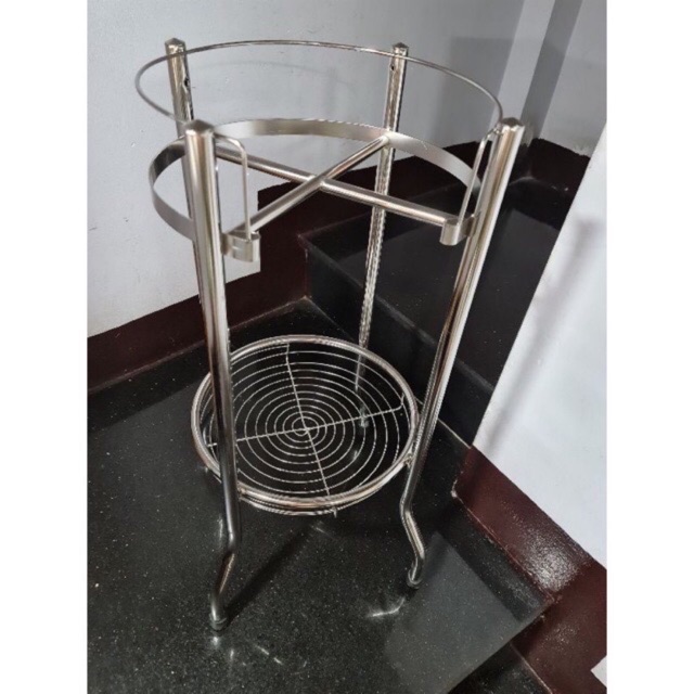 Kệ bằng inox dạng tròn, 4 chân, cao 66 cm, đường kính 28 cm, dùng để bình nước uống tinh khiết 20 lít, có 1 tầng làm khay để ly tách.kệ đảm bảo y chang hình chụp không khác tí nào , nếu khác bạn có thể trả lại sản phẩm