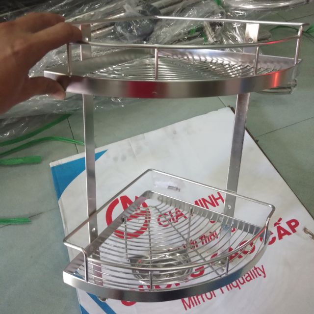kệ góc inox 304 nhà tắm đa năng kích thước 25x25cm. 2ngăn. 100% inox 304 đặc ruột loại dày cao cấp. inox 304 chống gỉ sắt. kệ đa năng có 2 móc dưới và 1 chén để xà bông cụ....vv...Giá YOU