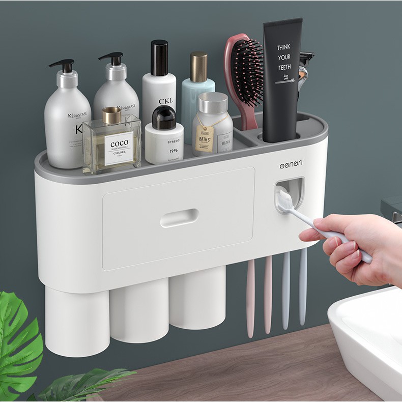 Kệ Phòng Tắm Thông Minh Kèm Cốc Và Bộ Nhả Kem Đánh Răng Tự Động Tiện Lợi-OENON