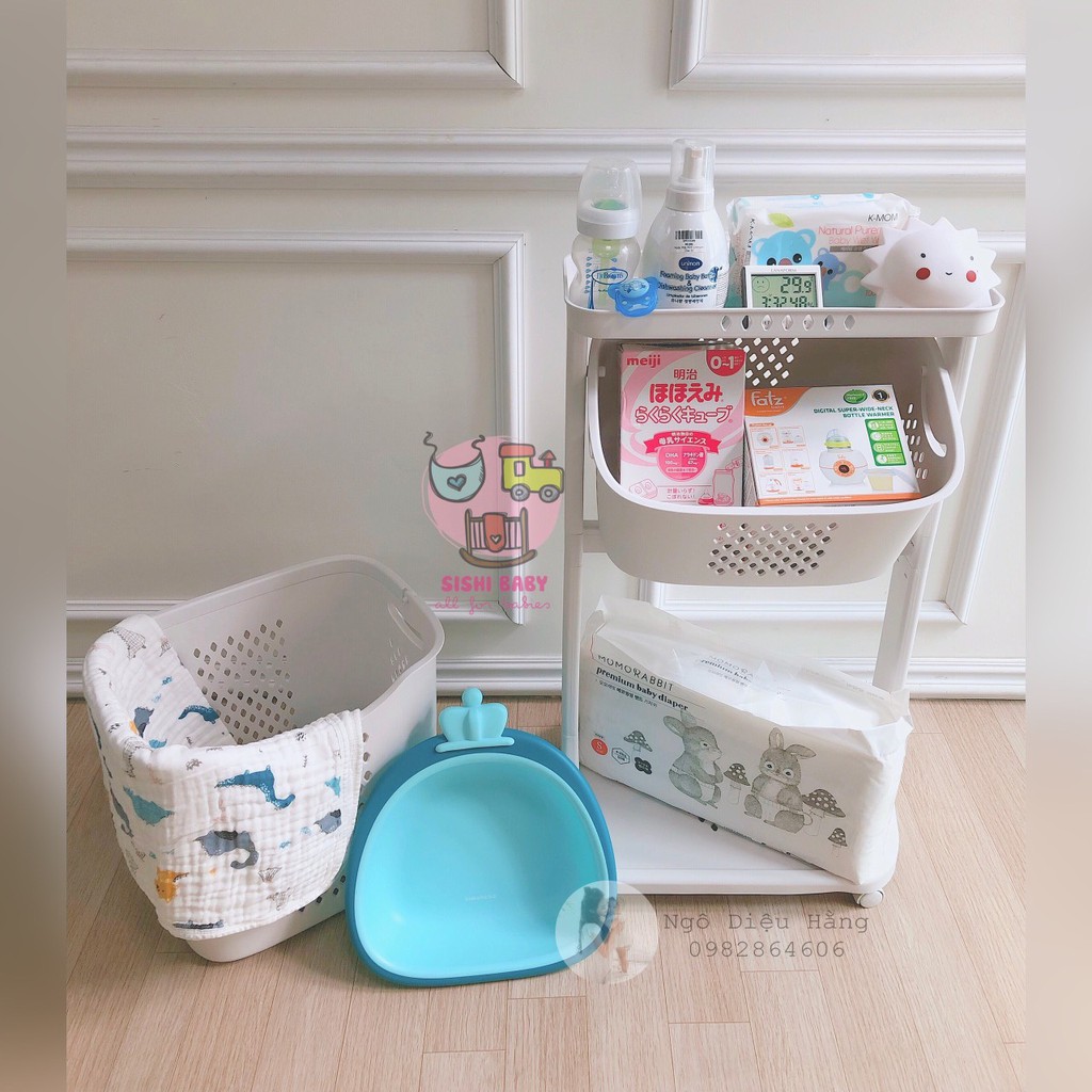 . Giỏ đựng đồ tầng dưới có thể tách ra để dùng độc lập rất dễ dàng, có quai xách tiện lợi.