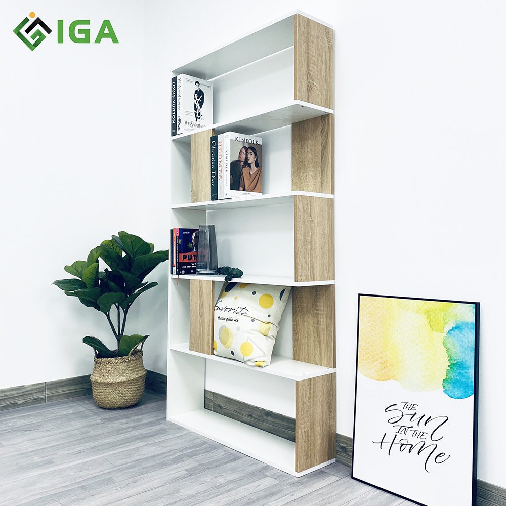 Giới thiệu Kệ Sách Để Sàn Mutil 2 Màu Vân Gỗ - Trắng Kết Hợp - GP105
