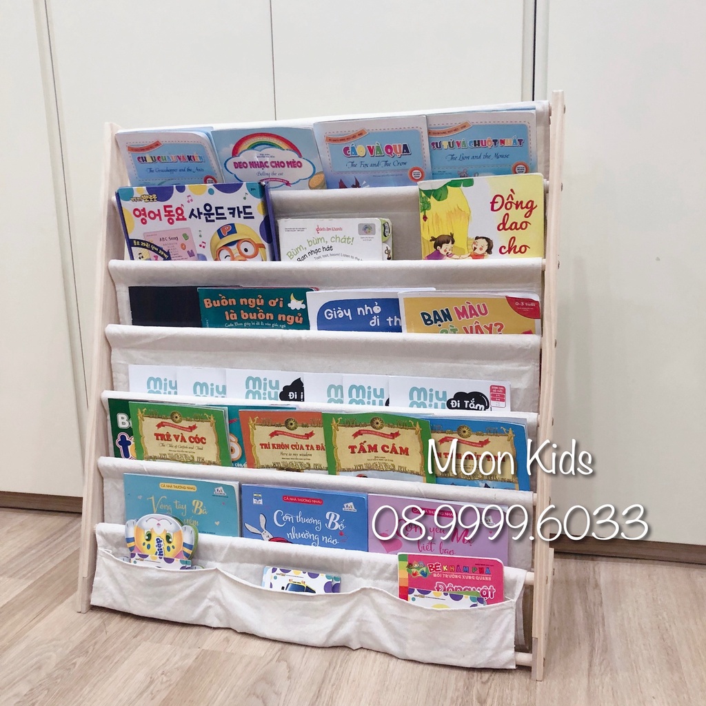 Kệ Sách Gỗ Cho Bé 7 Tầng Bằng Vải Kèm Khung Gỗ Cao Cấp