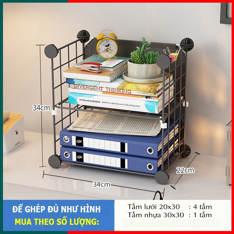 Kệ Sách Mini Để Bàn, Giá Đựng Sách Để Bàn Lắp Ghép Từ Tấm Lưới Thép Sơn Tĩnh Điện Chống Gỉ (Tặng Kèm Chốt)