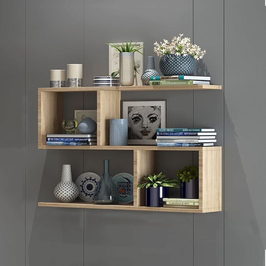 Kệ sách treo tường ziczac 2 tầng Kệ gỗ chữ S chất liệu MDF đa năng Giá Sách Hiện đại