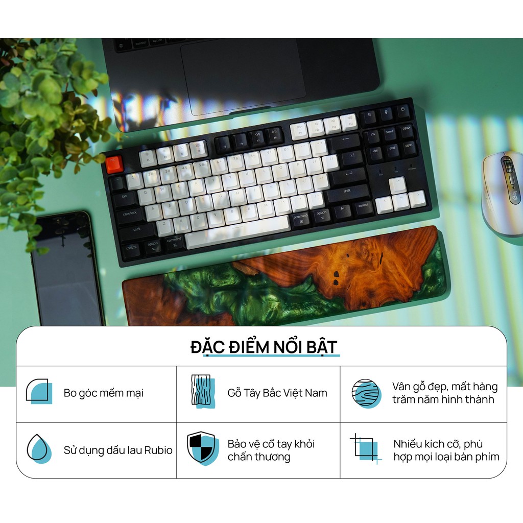 Máy tính & Laptop > Chuột & Bàn Phím > Khác || Kê tay gỗ Nu Resin HyperWork GreenCòn hàng