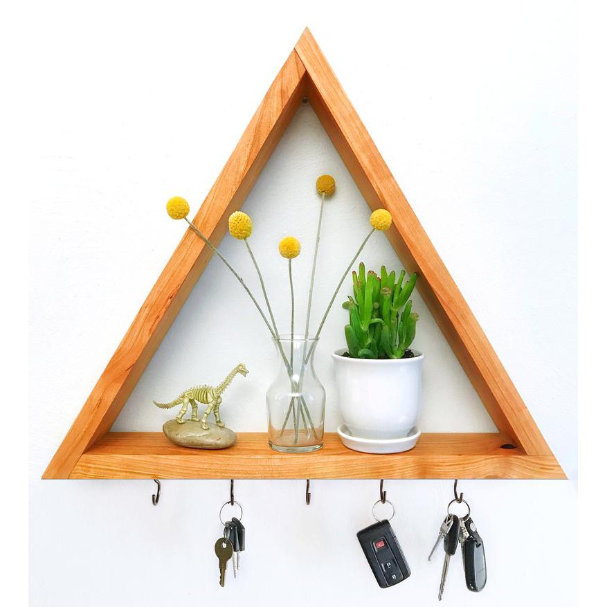 Nhà cửa & Đời sống > Nội thất > Kệ & Giá || kệ treo tường hình tam giác có móc treo kệ đựng đồ dùng trong nhà xinh xinh kt 30x30x10 cmCòn hàng