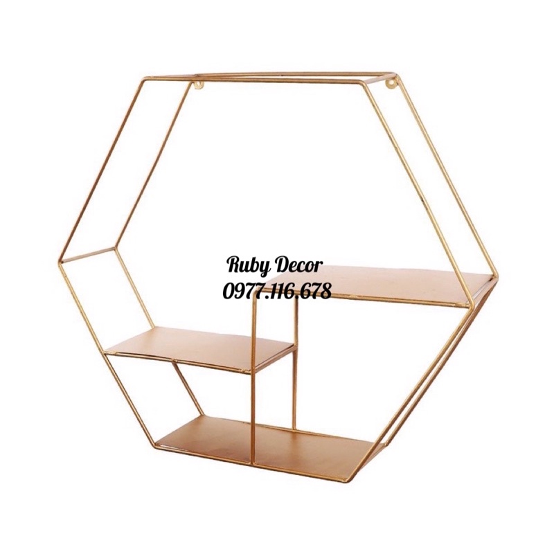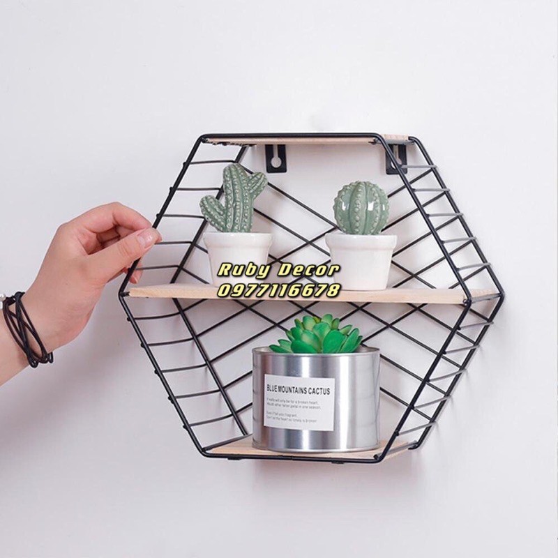 Kệ treo tường gỗ lục giác đôi decor, trang trí nhà cửa, để đồ siêu xinh✔️ Cấu tạo: