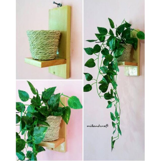 giá treo kệ treo cây cảnh trong nhà kệ để đồ lưu niệm gỗ tự nhiên dây treo không cần khoan tườngdài 30 cm rộng 10 cm cao 10cm