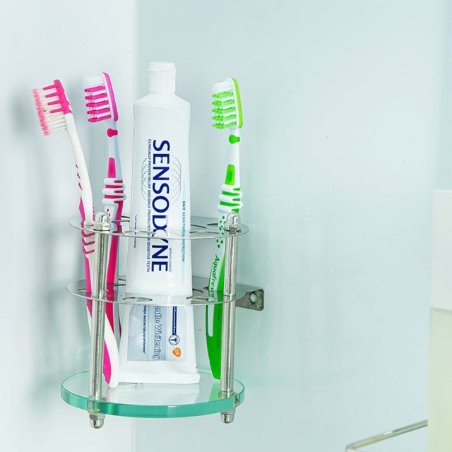 Gắn Để bàn chải kem đánh răng , dao cạo râu tiện dụng, nhỏ gọn, tiết kiệm không gian phòng tắm (Có thể để bàn cũng dc )