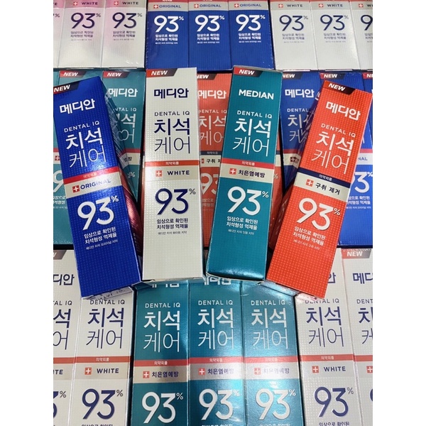 - Kem đánh răng làm trắng răng Median 93%: Trước có bản 86% đã ưng rồi. Nay hãng cải tiến lên bản 93% góp phần làm sạch mảng bám, giúp răng trở lên chắc khỏe
