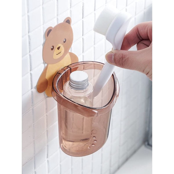 Giới thiệu (đã kèm móc dán) cốc đựng bàn chải, kem đánh răng, đồ vặt hình gấu dán tường Chum N15