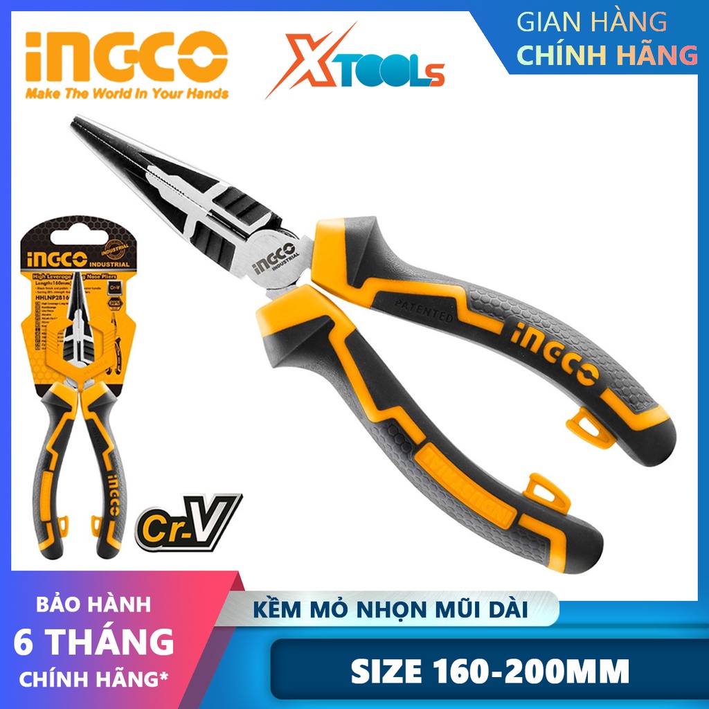 Kềm Mũi Nhọn Mỏ Dài INGCO | Kìm cắt công nghiệp Kích thước 6 inch/160mm - 8 inch/200mm Đầu kềm được đánh bóng và chống
