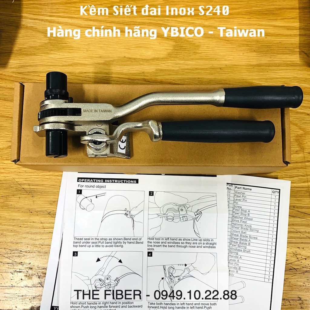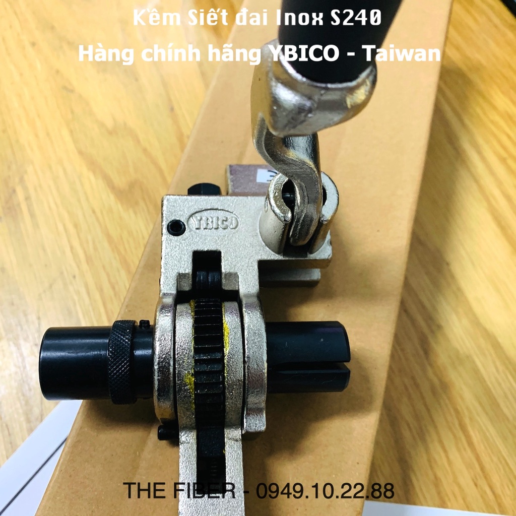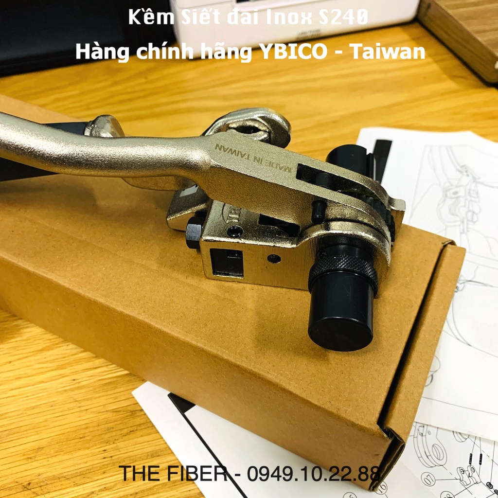 Kềm siết đai Inox S240 - YBICO Đài LoanKìm xiết đai inox S240 chính hãng YBICO có chữ "YBICO" in nổi và xuất xứ "MADE IN TAIWAN" in chìm trên sản phẩm