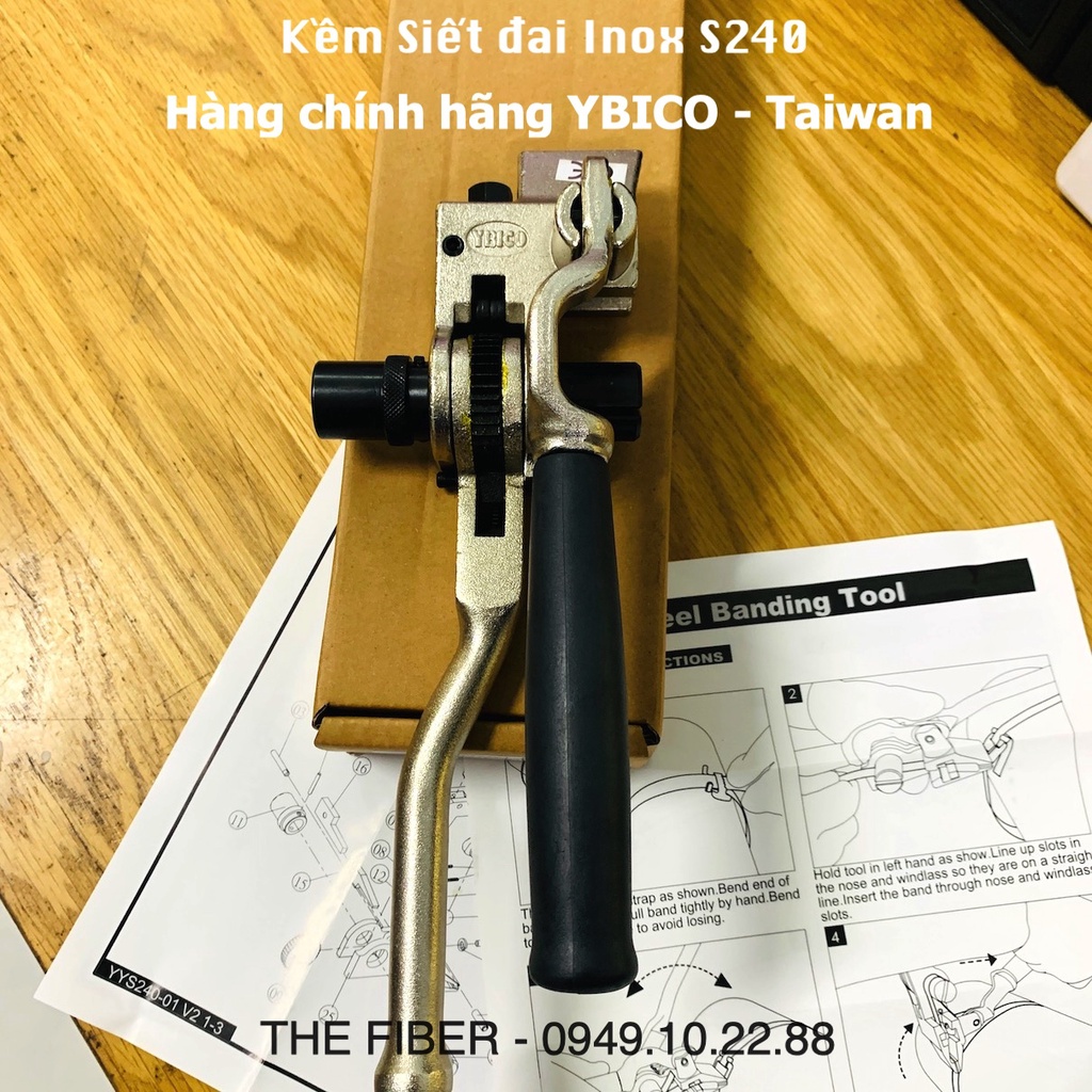 - S240 là một sản phẩm nổi tiếng của hãng Ybico - Taiwan với 3 tính năng: rút và kéo căng dây đai, Cắt dây đai và dùng thay búa đóng bọ khóa đai Inox.