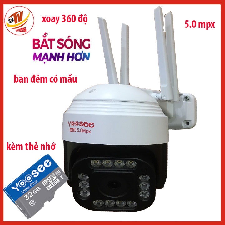 kem thẻ 32gb 64gb] camera wifi 5.0 ngoài trời ptz xoay 360 độ- trong nhà camera yoosee 4 Râu 5.0 Mpx full hd 2048p