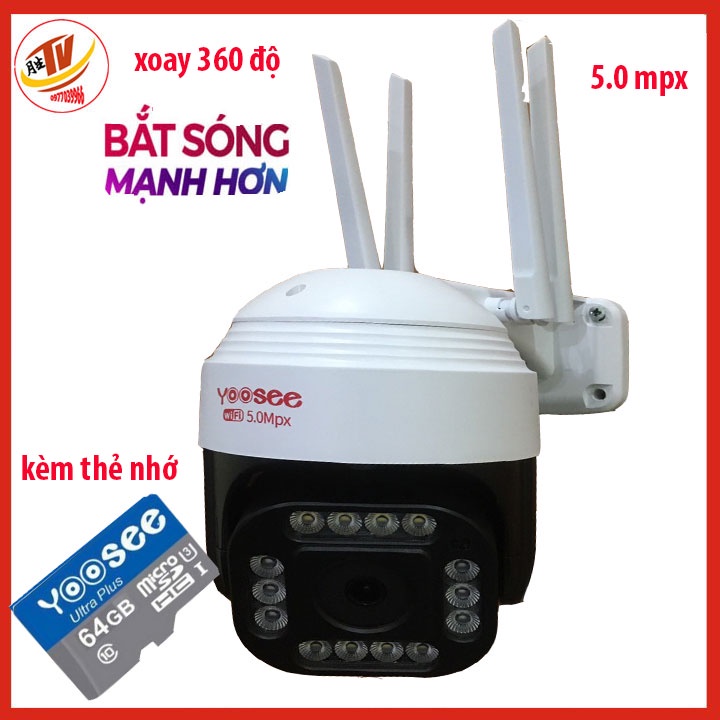 Giới thiệu kem thẻ 32gb 64gb] camera wifi 5.0 ngoài trời ptz xoay 360 độ- trong nhà camera yoosee 4 Râu 5.0 Mpx full hd 2048p