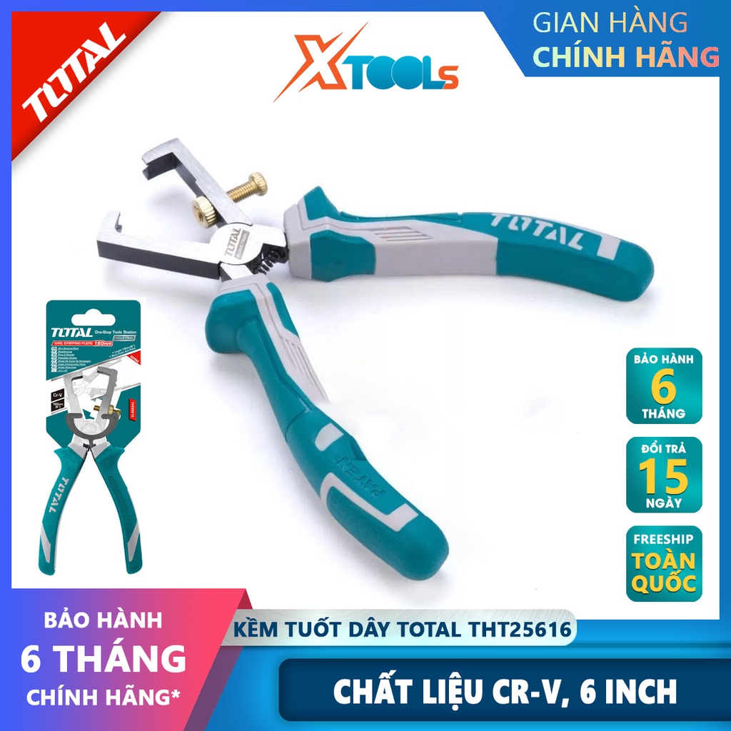 Nhà cửa & Đời sống > Dụng cụ & Thiết bị tiện ích > Dụng cụ > Kìm || Kềm tuốt dây điện TOTAL THT25616 Tuốt dây 6mm Kích thước: 150mm Thép CR-V, cao su cách điện bóc, tách vỏ dây điện các loCòn hàng