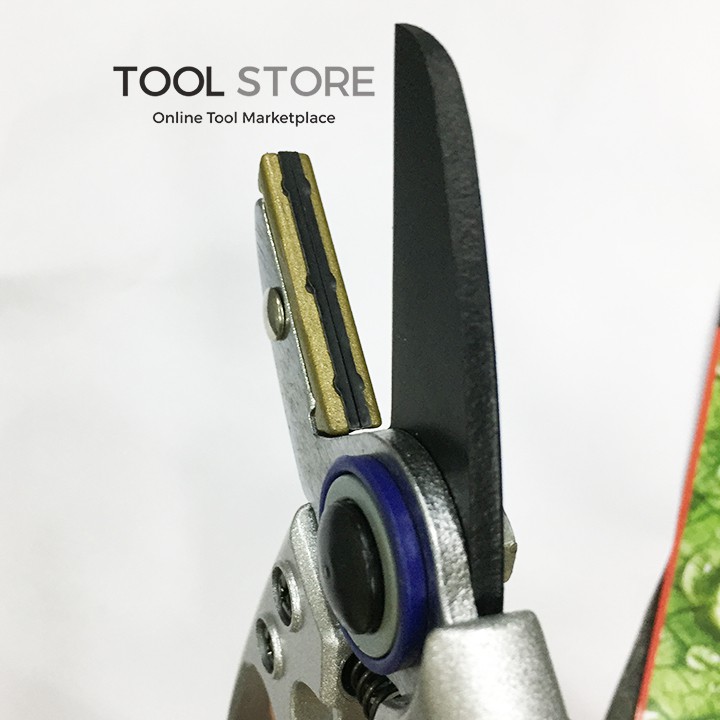 Lưỡi kéo bằng thép Carbon sơn mờ có phần đe đỡ giúp cắt các phần thân cây đường kính lớn không gây oằn lưỡi