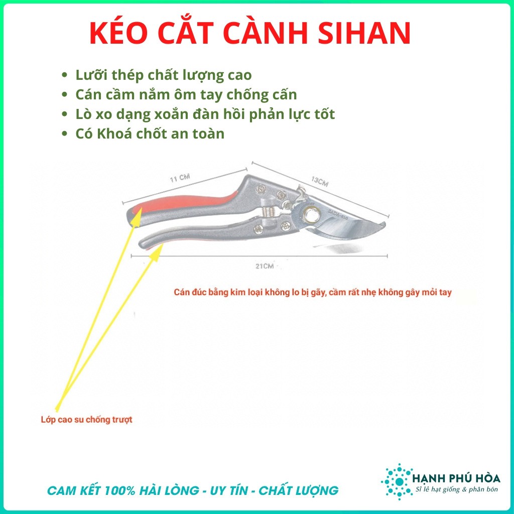 Giới thiệu Kéo Cắt Cành Sihan :-Kéo có thiết kế tiện dụng, gọn gàn, dùng để cắt cành tỉa nhánh loại bỏ cành hư cành chết cắt cuốn trái cắt hoa trên kiểng bonsai cây ăn trái.