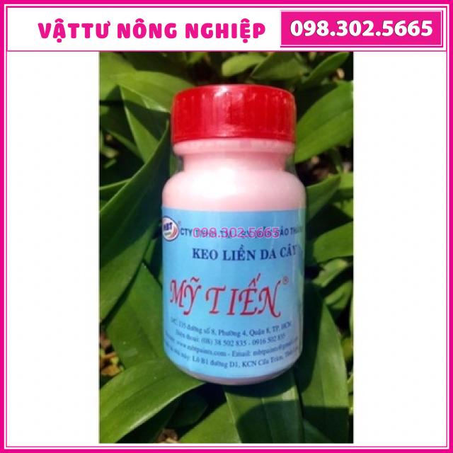 Keo liền da cây ( Keo liền sẹo) Mỹ Tiến lọ 100gKeo dùng để xử lý vết cắt cây, dán lá, khử trùng vết cắt cho cây, bổ sung vi lượng cho cây, làm cây mau hồi phục, ra rể, chồi nhanh,…
