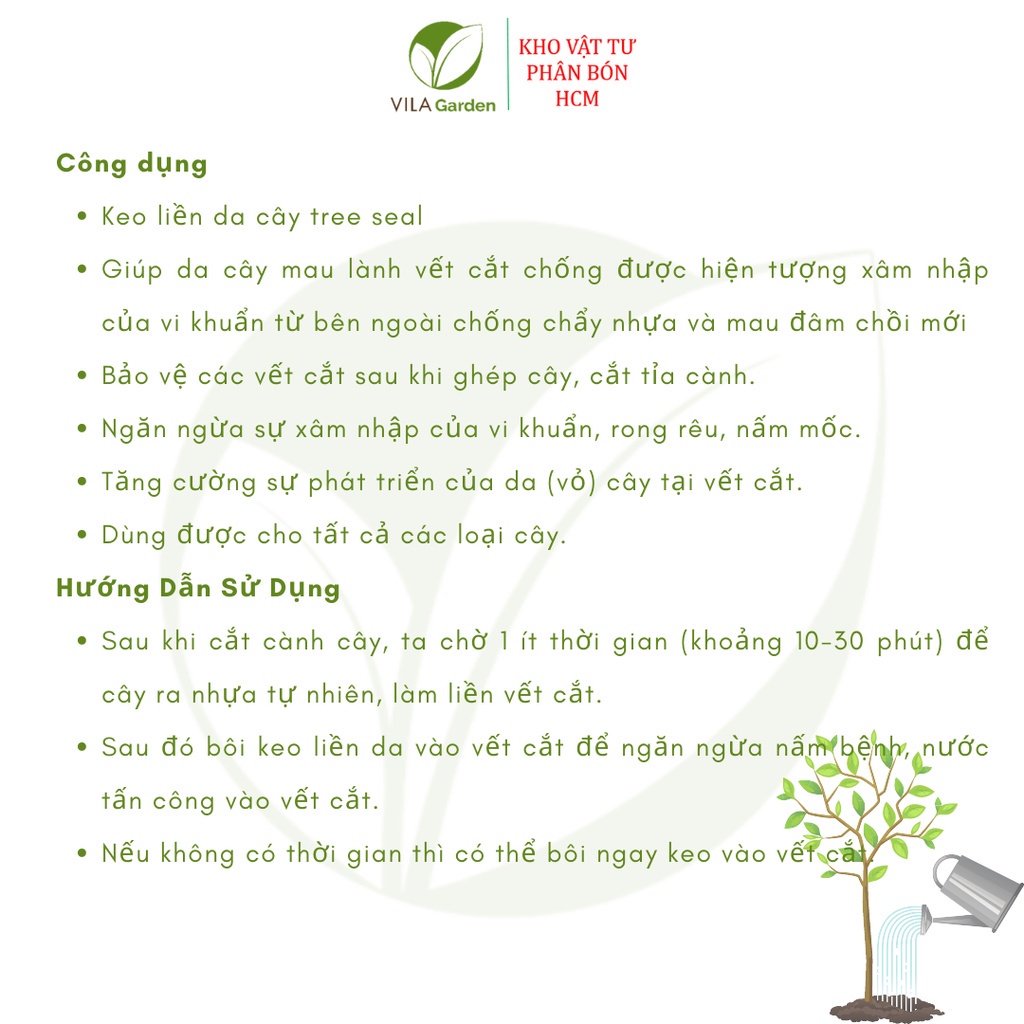 KEO LIỀN DA TREE SEAL - Keo Liền Sẹo- Là chế phẩm có nguồn gốc từ thiên nhiên có chứa các thành phần trung vi lượng và các chất diệt khuẩn và nấm bệnh đồng thời cung cấp các dưỡng chất cần thiết giúp làm lành hiệu quả các vết cắt tỉa, ghép,vết mài mòn, vết thương trên cây.