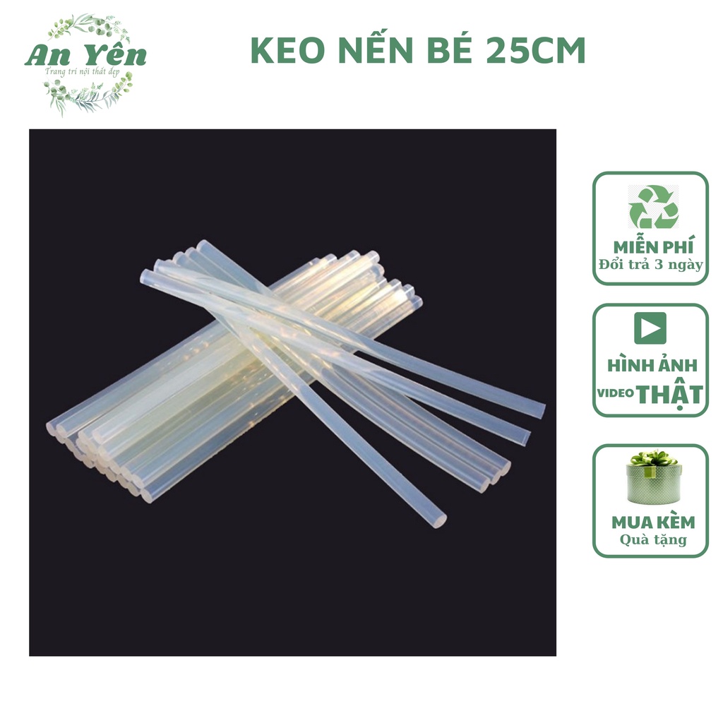 cây keo nến size nhỏ dùng cho súng bắn keo bé độ dài cây keo là 25 cmKeo trong đẹp dẻo dùng để gắn đồ nếu lắp súng keo bạn có thể làm đồ handmade dễ dàng