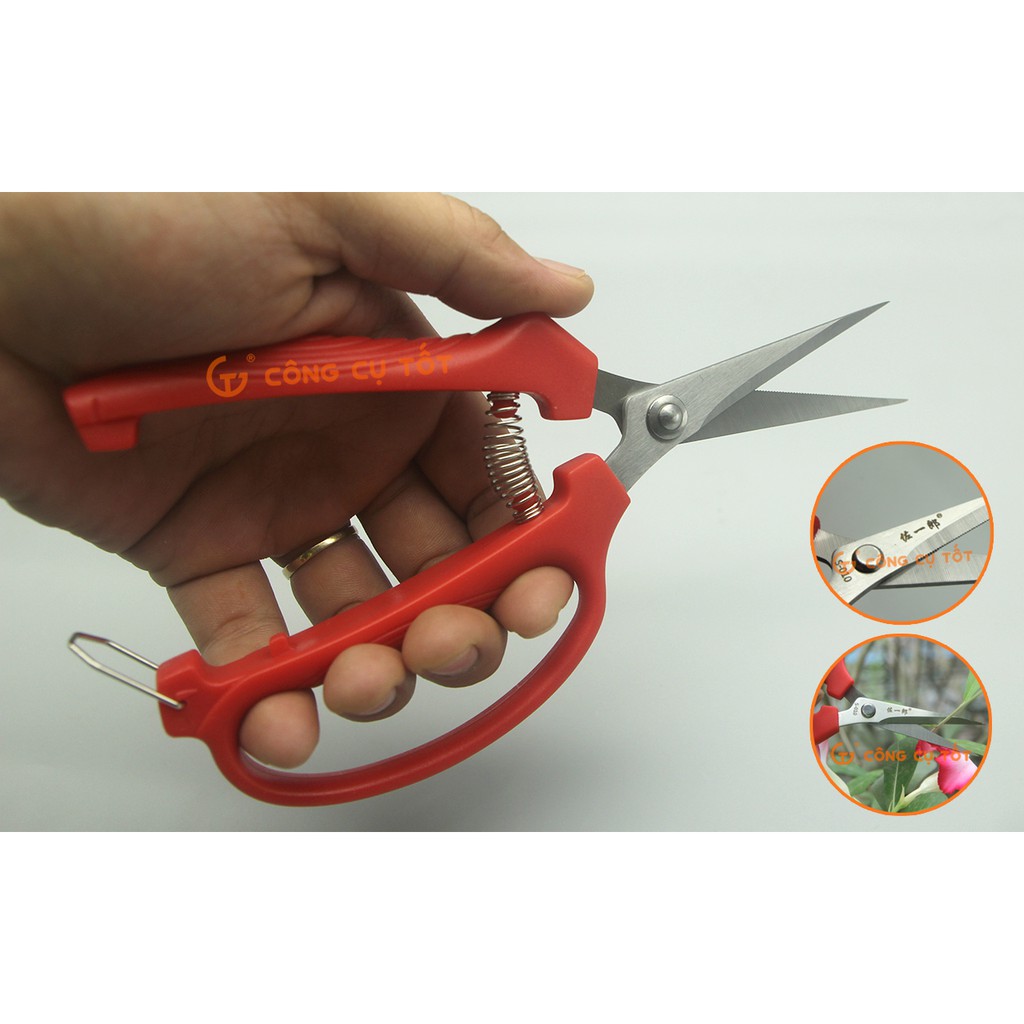 Được làm từ hợp kim thép siêu cứng, có độ bền cao, khả năng chống gỉ sét tốt.Mũi dài có thể dùng để cắt tỉa hoa, cây cảnh, cắt cành...