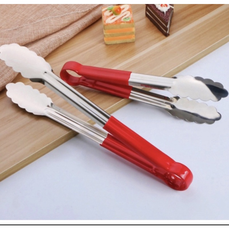 Kẹp Gắp Đồ Nướng Inox Cán Đỏ Đẹp Loại 1