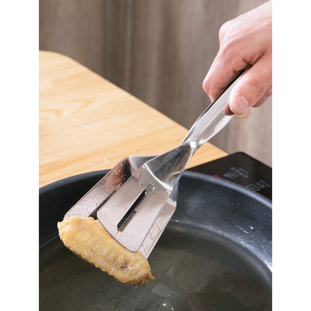 Kẹp gắp đồ chiên rán thiết kế hiện đại, bắt mắt, được làm bằng chất liệu thép không gỉ, sáng bóng, sạch, dễ dàng vệ sinh. Kẹp gắp được cấu tạo đúc nguyên miếng, khó biến dạng, bền bỉ.Kẹp gắp thiết kế đầu rỗng giúp dễ dàng thoát dầu ăn, nước trên thực phẩm. Tay cầm đàn hồi giúp bạn dễ dàng trong việc lật chiên rán thực phẩm như cá rán, thịt...