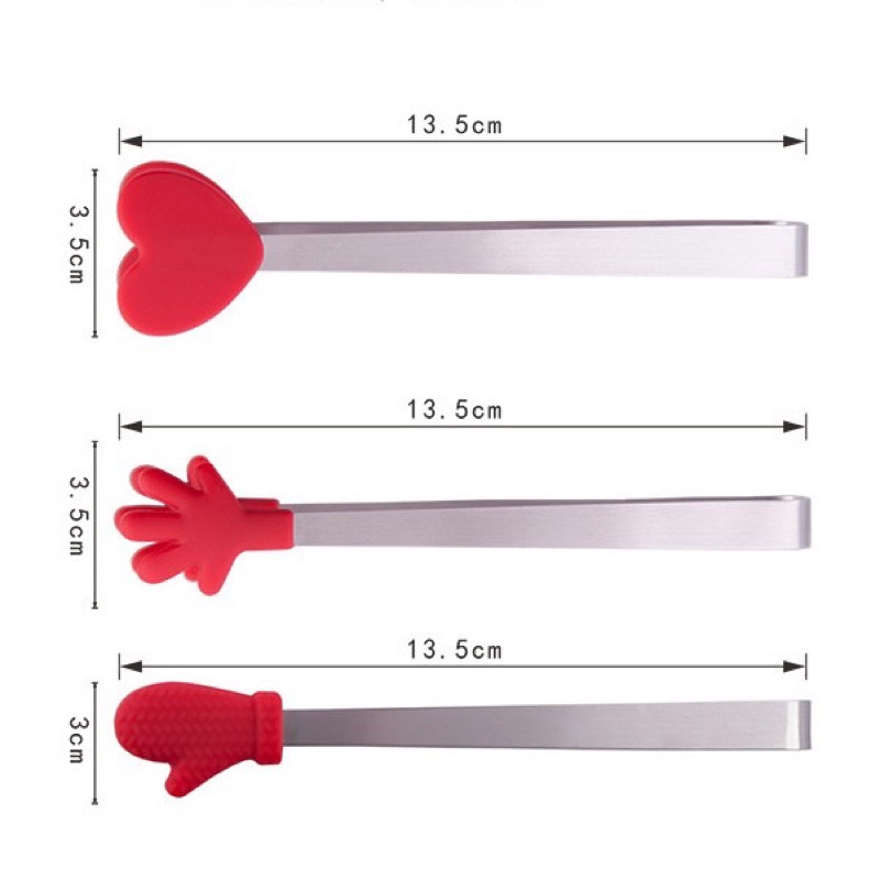 Kẹp gắp thức ăn bằng silicon và thép không gỉ, kẹp dáng nhỏ, hình bàn tay, trái tim, bao tay dễ thươngThông tin chi tiết sản phẩm: