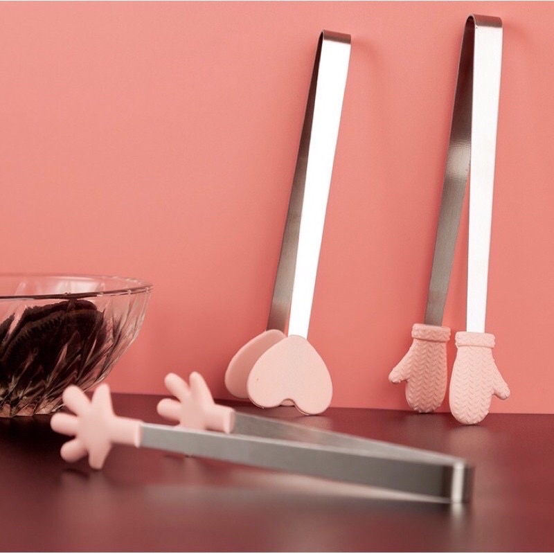 Nhà cửa & Đời sống > Dụng cụ nhà bếp > Cây vét bột & đồ gắp thức ăn || Kẹp gắp thức ăn bằng silicon và thép không gỉ, kẹp hình bao tay, bàn tay, hình trái timCòn hàng