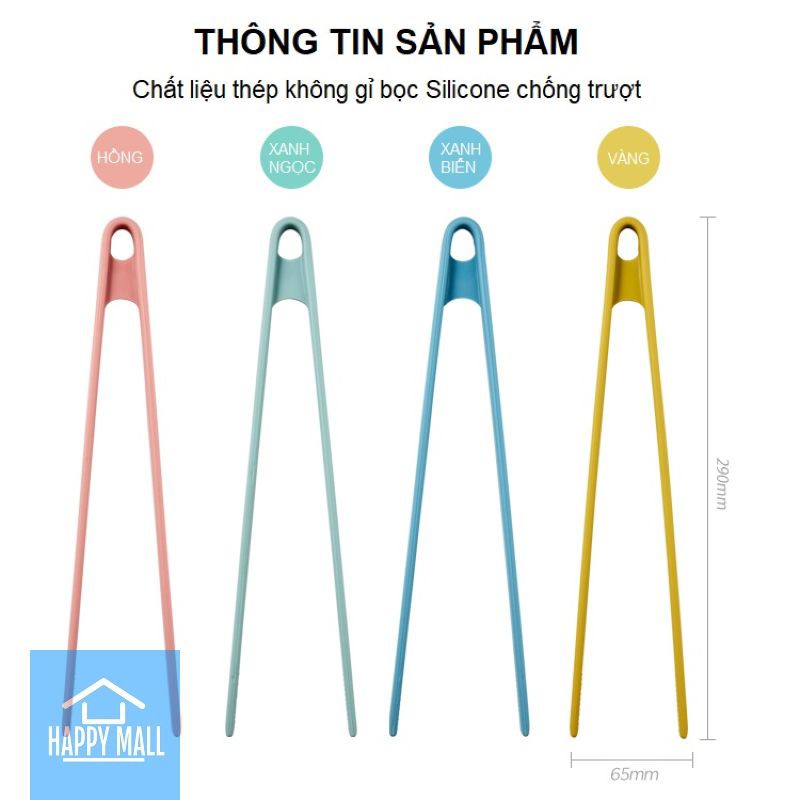 - Tay cầm dài được thiết kế với lớp phủ silicon ở bên ngoài giúp bạn tránh nóng và không bị ảnh hưởng bởi hơi nóng phả ra từ lò nướng đồng thời giúp chống trơn trượt và cách nhiệt khi cầm trực tiếp vào dụng cụ khi nấu ăn. Thép không gỉ cao cấp cứng giúp thức ăn được kẹp chặt bằng một lực vừa đủ, kể cả thức ăn có kích thước lớn