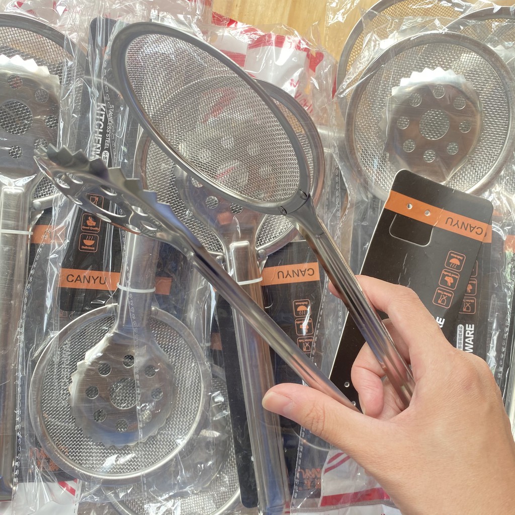 Kẹp gắp thức ăn có lưới ráo dầu inox 304 cao cấp big size