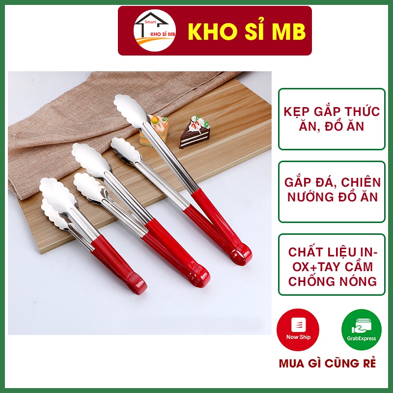 Kẹp gắp thức ăn, đồ ăn, nướng chiên, inox 304, cán chống nóng cao cấp kho sỉ mb