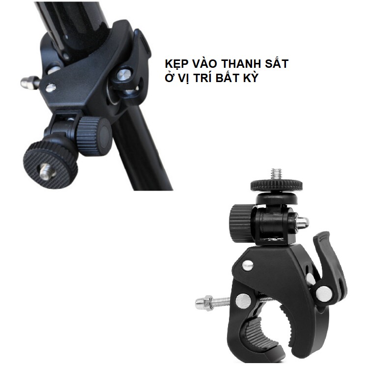 Kẹp giữ camera GoPro máy ảnh hoặc điện thoại lên xe máy, xe đạp hoặc các thanh treo dạng tròn
