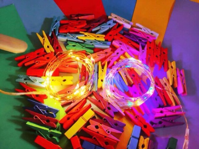 Kẹp gỗ màu 3,5x0,7cm dùng để trang trí nhà cửa và kẹp ảnh trang trí. ngày càng được sử dụng nhiều và phổ biến. Kẹp gỗ được dùng trang trí sinh nhật cùng đèn đom đóm (shop có nhé) và dây gaiCác bạn mua kẹp gỗ tặng dây đi kèm cho tiện trang trí.