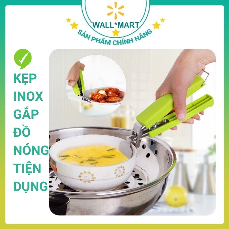 Giới thiệu Kẹp inox gắp đồ thức ăn chống nóng tay cầm nhựa xanh - Dụng cụ gắp Inox có lò xo WALLMART WM103