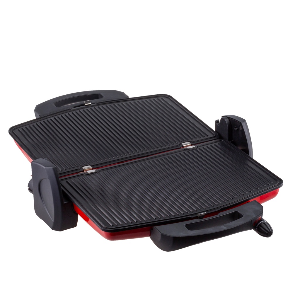 – Khi mở ra 180 độ bạn có thể sử dụng như 1 chiếc vỉ nướng điện thông thường với 2 bên khay nướng với 2 nút điều chỉnh nhiệt độ khác nhau