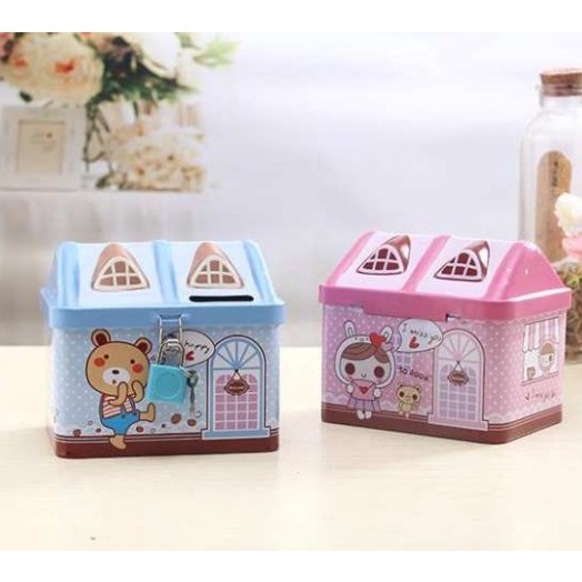 Két đựng tiền mini hình ngôi nhà cho bé yêu | Hộp tiết kiệm mini có khóa.