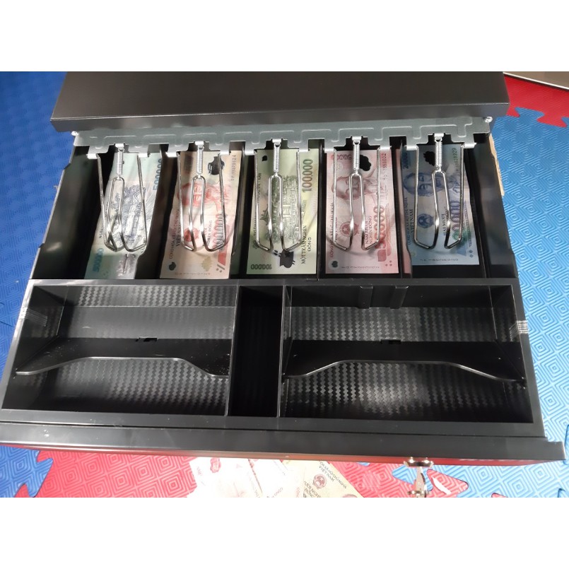 Ngăn đựng tiền có 9 ngăn, trong đó 5 ngăn có kẹp giúp việc thu ngân trở nên dễ dàng phân loại, sắp xếp và lấy tiền nhanh chóng, dễ dàng và thuận tiện cho thu ngân khi kiểm tra tiền mặt. Ngoài ra, 5 ngăn thường đa chức năng khi vừa đựng được tiền, hóa đơn, giấy in bill, tiền xu, chìa khóa,...
