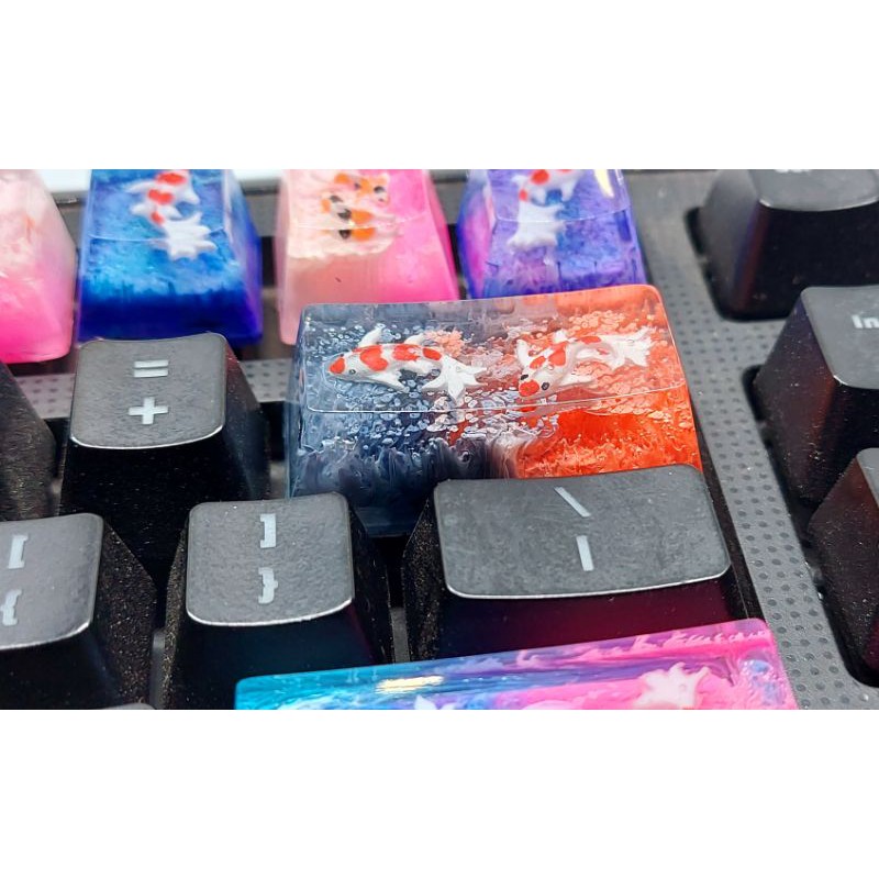 Keycap artisan cá koi 2U trang trí bàn phím cơ gaming (tone đỏ đen)Chất liệu: resin ultra clear A50
