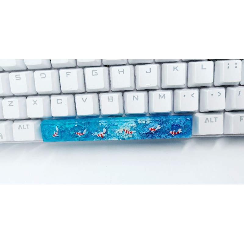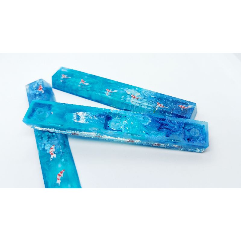 Keycap artisan cá koi spacebar 6.25u tone xanh trang trí bàn phím cơChất liệu: resin ultra clear