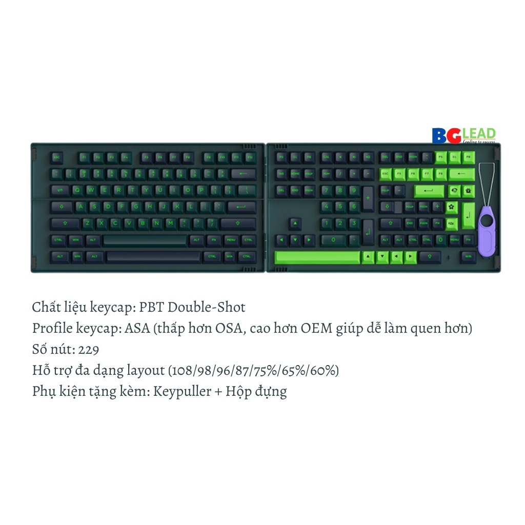 - Profile keycap: ASA (thấp hơn OSA, cao hơn OEM giúp dễ làm quen hơn)