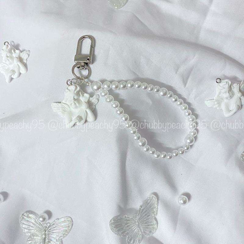 Điện Thoại & Phụ Kiện > Phụ kiện > Dây đeo điện thoại & Móc khóa || Keyring/Keychain/Móc khoá in ảnh mix dây hạt trai và charm thiên thần - Angel charm handmadeCòn hàng