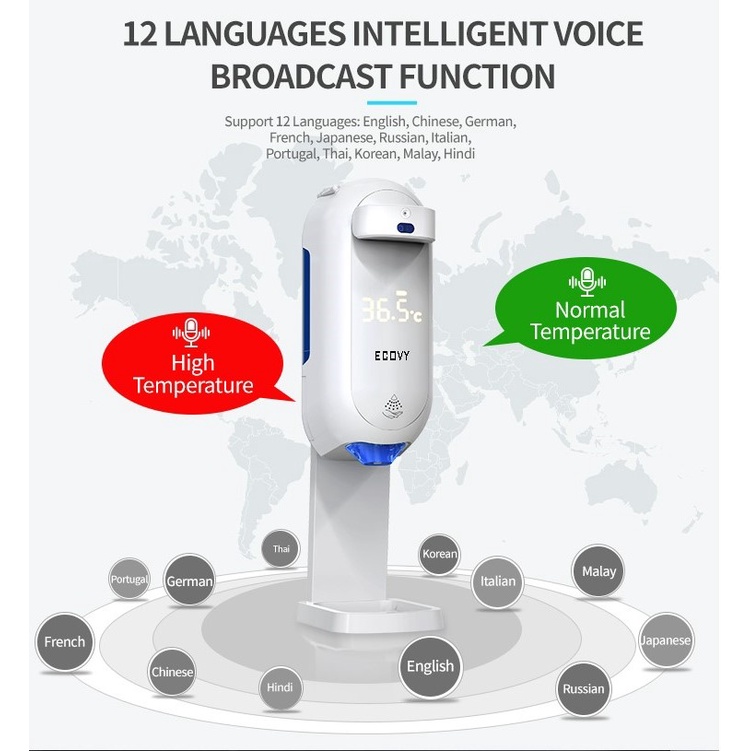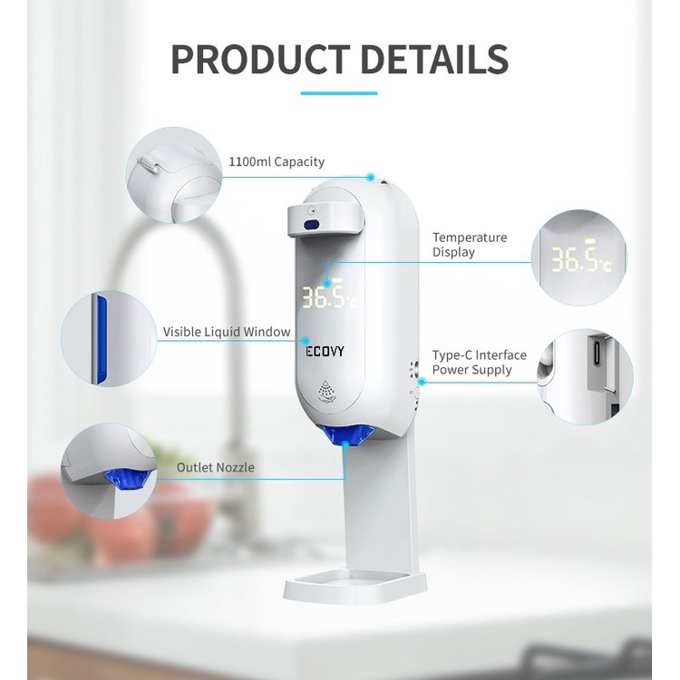 Máy rửa tay sát khuẩn cảm ứng ECOVY Model L5 Plus có đo nhiệt độ trán và tay, thích hợp lắp đặt ở nhiều nơi: Bệnh viện, trường học, trung tâm đào tạo, văn phòng, trung tâm thương mại, thang máy tòa nhà, nhà xưởng, nơi đông người, …. Tiện lợi sử dụng, dễ dàng lắp đặt, bảo vệ bạn khỏi các loại vi khuẩn, virus gây bệnh.ECOVY L5 Plus Khắc phục các nhược điểm của các dòng máy K9, K9 Pro, K9 Pro Max, K10 pro (rất dễ hư hỏng).