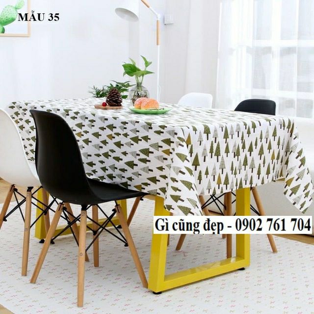 Khăn trải bàn dùng cho bàn tròn, bàn vuông, bàn oval, bàn chữ nhật đều được. Có nhiều kích thước cho khách chọnChất liệu vải bố canvas không thấm nước, dễ lau chùi.
