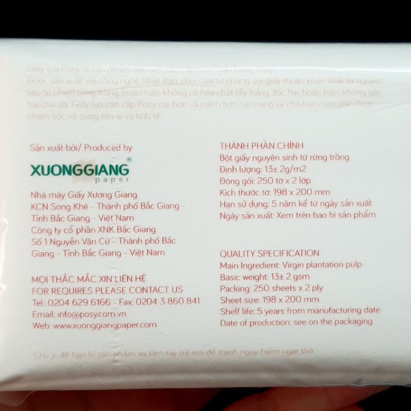 Khăn Giấy Lụa Rút Posy Cao Cấp Mềm Mịn Dai Hơn Khăn Lau Mặt 250 Tờ 2 LớpThành Phần từ Bộ giaya Nguyên Sinh từ rừng Trồng