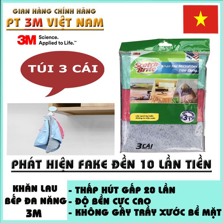 Khăn lau 3M microfiber lau bếp tiện dụng ( 3 Cái )