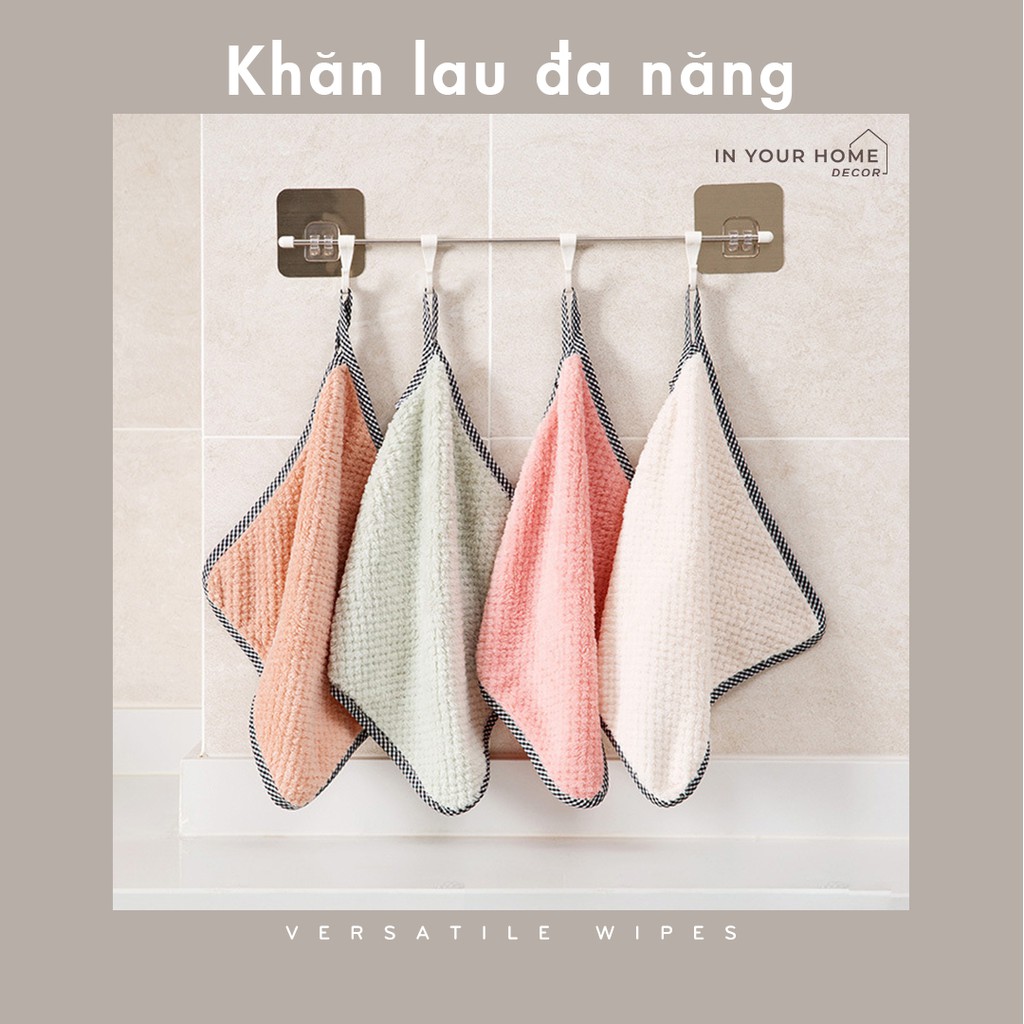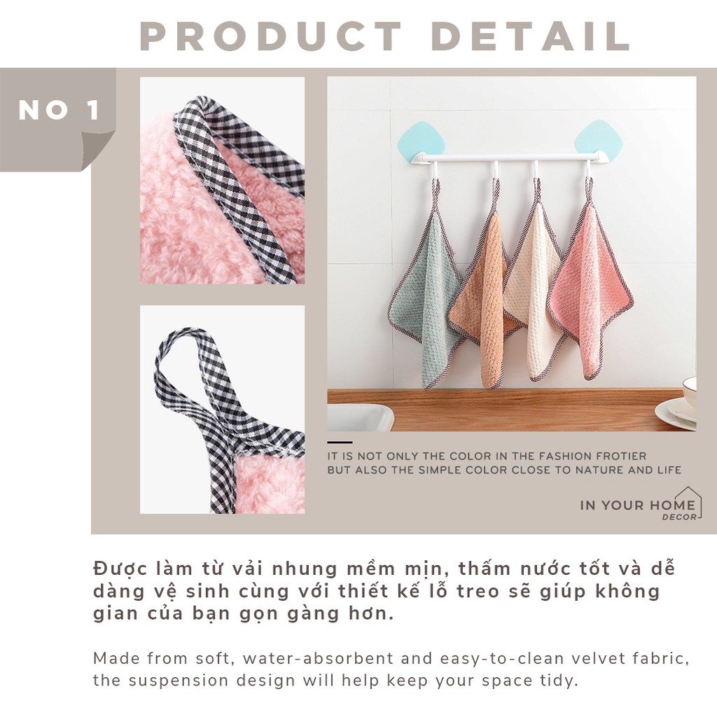Khăn lau bếp bằng vải nhung thấm nước tốt có móc treo, khăn đa năng lau chén bát
