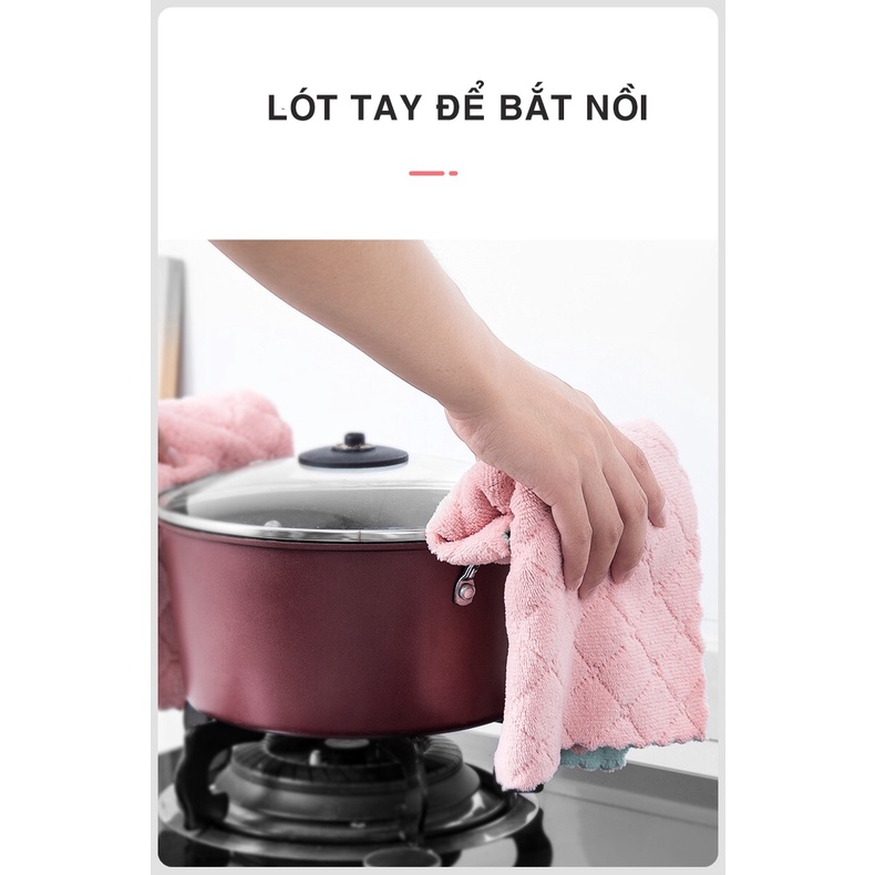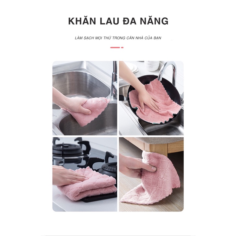 👉 Thông tin sản phẩm:Khăn lau bếp đa năng 2 mặt siêu thấm kích thước 16x27cm- Chất liệu: Vải bông mềm mịn.